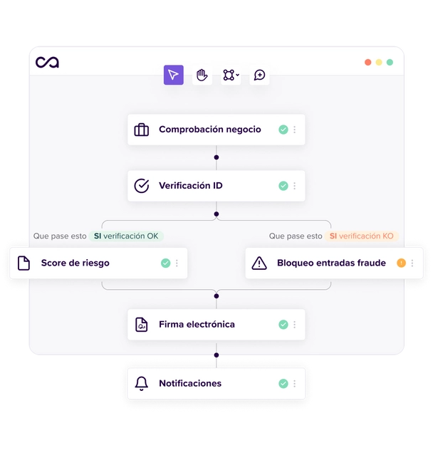 Todas las herramientas para orquestar un flujo compliant, seguro y sencillo. El primer KYB all-in-one con bastanteo de poderes y screening avanzado IA.
