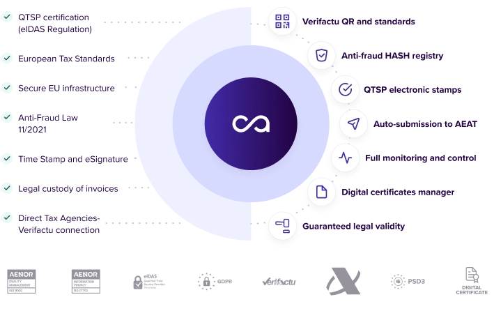 From freelancers and micro-SMEs to large multi-issuers, Tecalis Electronic Invoice extends compliance of Verifactu and other standards.